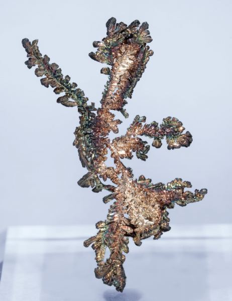 Floater and dendritic growth of very well defined and bright Silver crystals partially coated, especially at the tips of each crystal, by native Copper.White Pine Mine, White Pine, Ontonagon County, Michigan USA