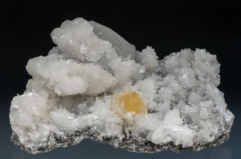 Powellite with Stilbite-Ca, Calcite and Fluorapophyllite-(K) (Ref: EK92AF9)