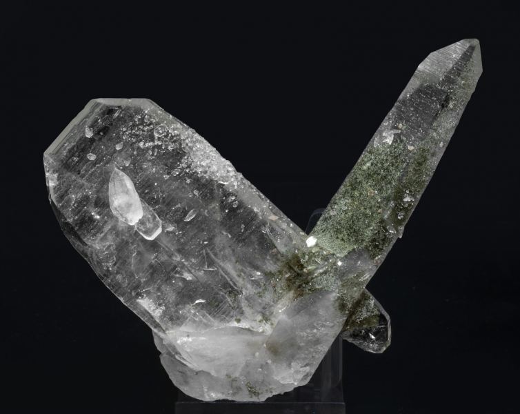 Group of Quartz crystals, two of them clearly dominant and having very different morphologies, some of them doubly terminated and flattened, and the other with de Dauphiné shape and rich with Chlorite inclusions.Ganesh Himal, Dhading District, Bagmati Pradesh Nepal (12/2018)