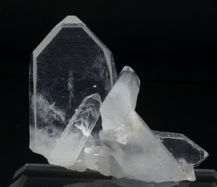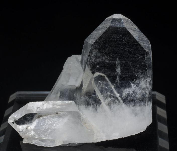 A novelty at Tucson 2015. Extraordinarily sharp japan law twin with very well defined and transparent crystals. We note that the japan law twin, already rare, is even more rare in Alpine type crevices where this Quartz is formed. The sample is a floater with a recrystallized base.Arun Valley, Mount Makalu, Mahalangur Himalayas Nepal (2014)