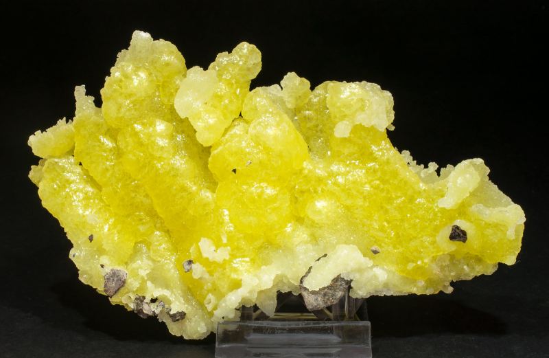 Botryoidal aggregates of Brucite on matrix with visible and better defined crystal forms than usual in the species. Translucent, with good luster and an intense and uniform lemon-yellow color.The specimen comes from the collection of Peter Rosewarne (number Rc953), whose label we will send to the buyer, along with a copy of the analysis.