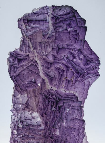 Very aerial growth of Fluorite crystals with cubic habit, but with curious deformations and marked polycrystalline growths. The crystals are translucent, lustrous, and have an intense violet color that is concentrated especially on the edges. Different