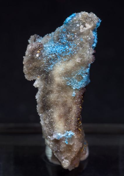 Felted aggregates of filiform crystals of Carbonatecyanotrichite, a different species from the better known Cyanotrichite, with an intense and uniform blue color. On matrix, with Calcite and small Fluorite crystals.Qinglong Mine, Dachang, Qinglong, Qianxi'nan Autonomous Prefecture, Guizhou Province China