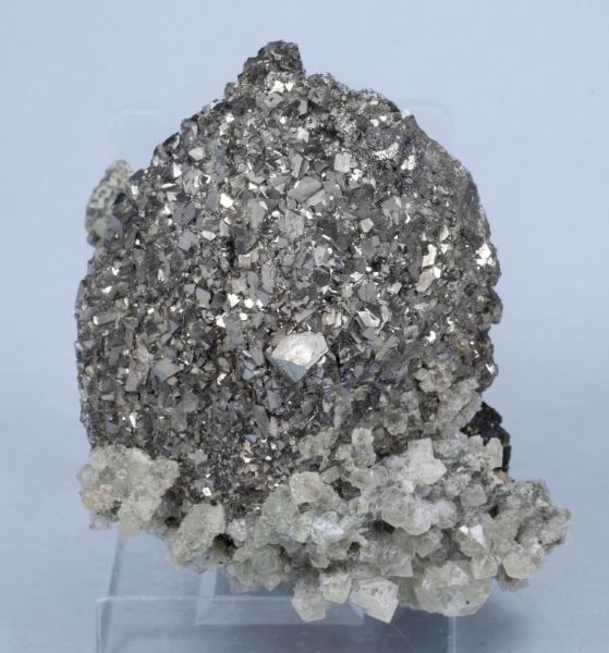 Löllingite crystal with strongly curved edges, completely coated by equant Arsenopyrite crystals and on matrix, with aggregates of Quartz crystals.Huanggang Mines, Hexigten Banner (Kèshíkèténg Qí), Chifeng (Ulanhad), Inner Mongolia Autonomous Region China (2012)
