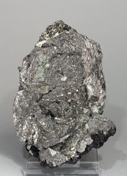 A novelty at St. Marie 2012. Group of very bright crystals of Löllingite with polycrystalline growths. They have an extraordinary size for the species and have radial, not epitactic, dipyramidal crystals of Arsenopyrite on the surfaces of their faces. They are on matrix, with Calcite, Fluorite and Magnetite. Both the Löllingite and Arsenopyrite have been analyzed and we'll send a copy of both analyses to the buyer.Huanggang Mines, Hexigten Banner (Kèshíkèténg Qí), Chifeng (Ulanhad), Inner Mongolia Autonomous Region China (2011)