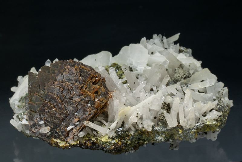 Calcite (variety "papierspat") with Chlorite, Orthoclase and Quartz