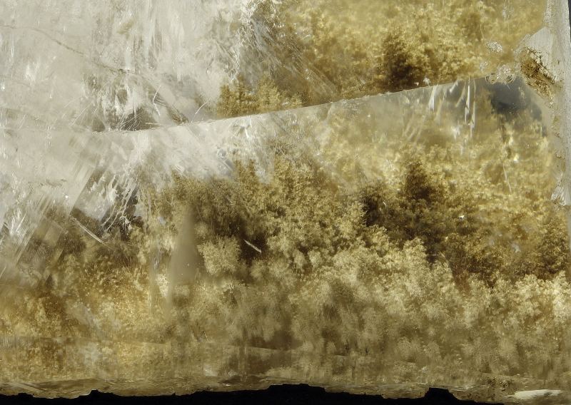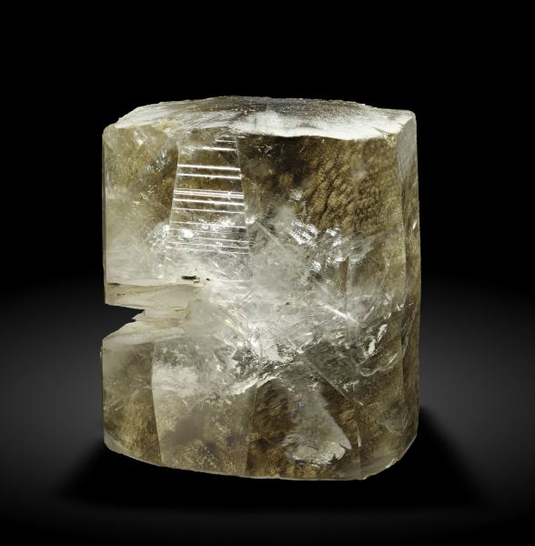 Doubly terminated floater Calcite crystal with dominant elongated faces and a very flattened terminal rhombohedron. Translucent, lustrous and very rich in oriented inclusions. The back is complete and exhibits a curious recrystallized growth that makes the crystal appear to be hemihedral.Lishui Prefecture, Zhejiang Province China (2009)