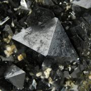 Very aerial group of Hematite pseudomorphs after octahedral crystals of Magnetite (a variety known as martite) with a second generation of small lamellar crystals of the same species.Payún Matru Volcano, Malargüe, Malargüe Department, Mendoza Province Argentina (2008)