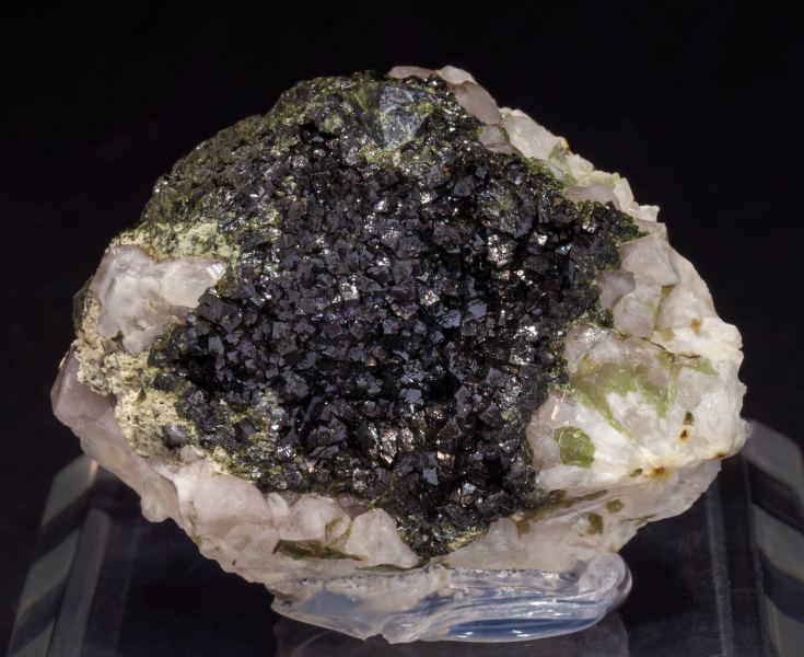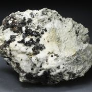 Descloizite crystals with an equidimensional habit very different from those known in other localities, with very sharp faces and edges, a very dark green color, almost black, on matrix, with Quartz. The specimen is accompanied by two old handwritten labels in which the original collection does not appear.Los Pilones, Cruz del Eje Departament, Córdoba Province Argentina