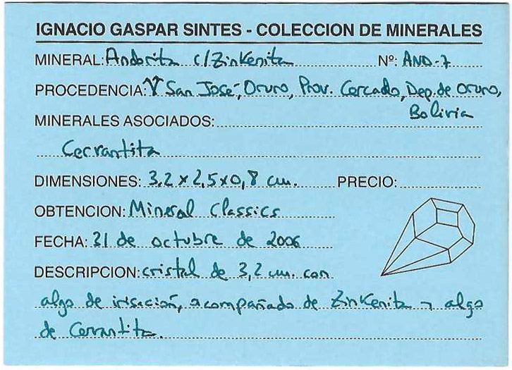 Parallel growth of flattened Andorite crystals, very sharp, with good luster, and partially covered by acicular Zinkenite crystals.The specimen comes from the Ignacio Gaspar Sintes collection (number AND-7), whose catalogue card we will send to the buyer.