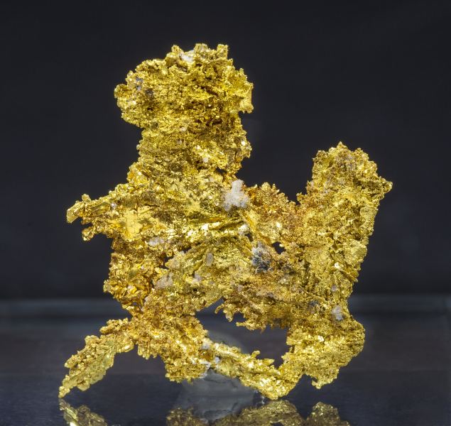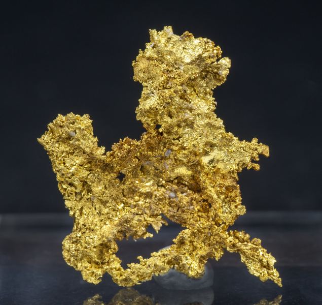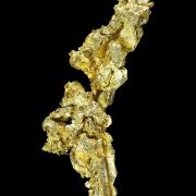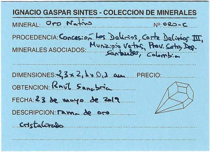 Very aerial dendritic growth of elongated and very sharp Gold crystals, with distinct window growths on some of the faces. Sharper than usual in these local deposits, and with small remnants of Quartz matrix.The specimen comes from the Ignacio Gaspar Sintes collection (number GOLD-C), whose label we will send to the buyer.