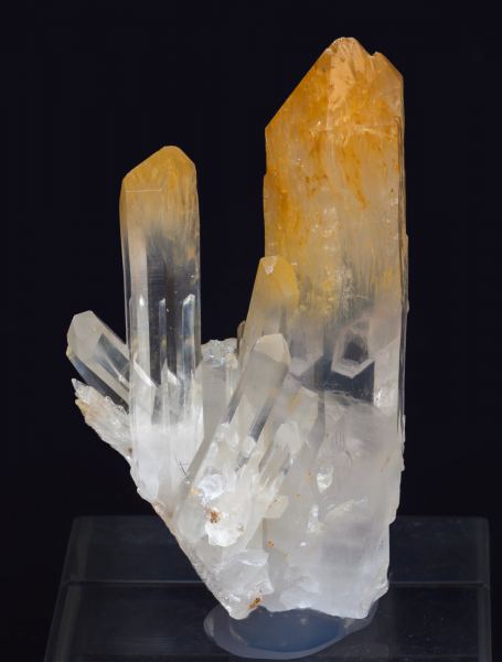 Group of Quartz crystals with very well defined faces and one of them, clearly dominant, with polycrystalline terminations. The crystals, mostly colorless and clear, are very rich in inclusions of a clayey aspect and yellow-orange color in the terminal part. It has been said that these inclusions were Humboldtine but this has already been discredited (see: Quartz and Humboldtine? from Colombia )Cabiche, Quípama, Boyacá Department Colombia (01/2019)