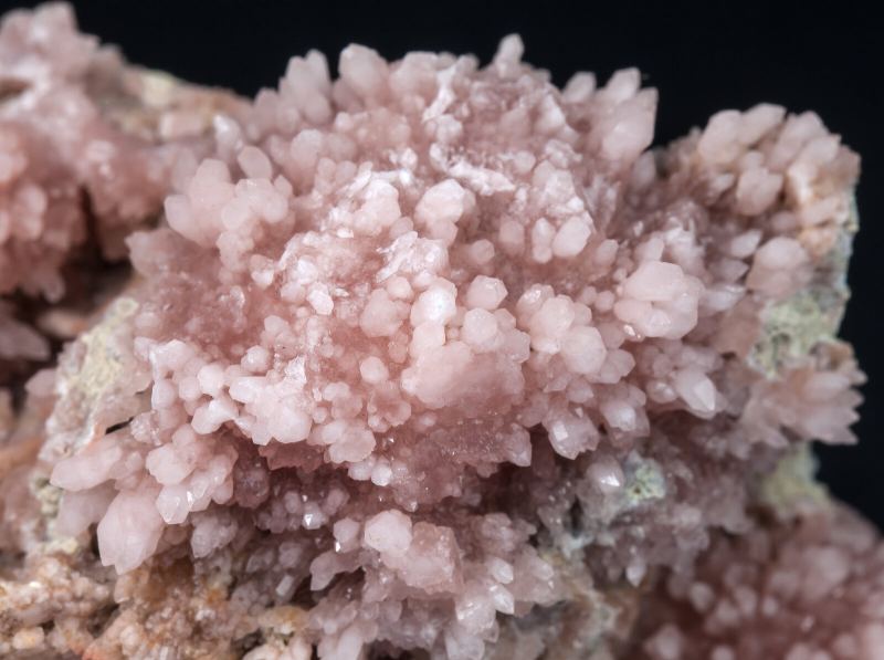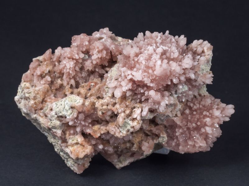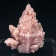 A novelty at Tucson Virtual 2021. Original fan-shaped growths on a matrix of translucent Quartz crystals, with bright luster and an intense pink color, the color being their intrinsic natural color, not due to inclusions of iron oxides. The precise name of the mine is not yet known, but surely with the passage of time it will become known.Huancayo Province, Junín Department Peru (2020)