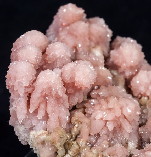A novelty at Tucson Virtual 2021. Unusual fan-shaped growths on matrix of translucent, lustrous and deep pink Quartz crystals whose color is not due to inclusions of iron oxides but rather is inherent to the Quartz itself. The exact name of the mine is not yet known, but it will surely become known with the passage of time.Huancayo Province, Junín Department Peru (2020)