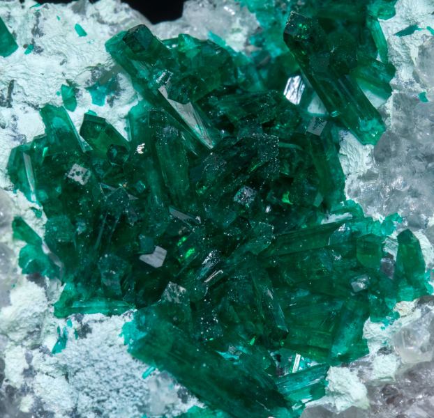 Dioptase on Calcite (classic material)