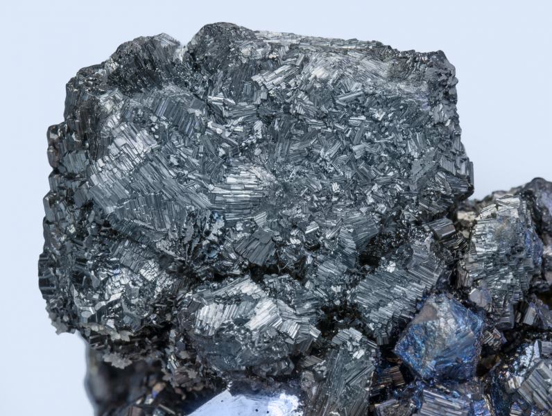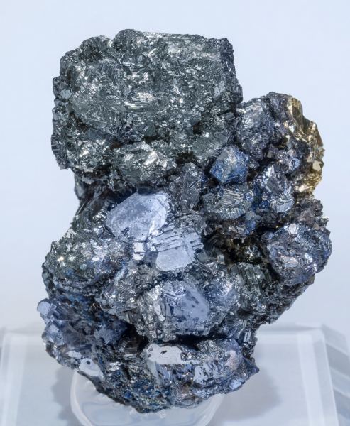 Cyclic twins of well-defined Bournonite crystals covered by a second generation of very bright small crystals of Bournonite. On matrix with Galena crystals and groups of Pyrite crystals.Huanzala Mine, Huallanca District, Dos de Mayo Province, Huánuco Department Peru (±2019)