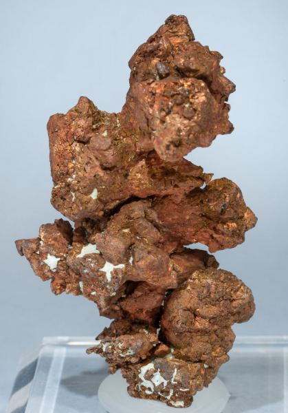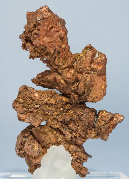 A novelty at Tucson 2017. Dendritic aggregate of elongated octahedral crystals, with parallel growths and slight curvatures on the edges. It is from a locality not yet well known for collectible Copper samples.Acari Mine, Caraveli Province, Arequipa Department Peru (2015)