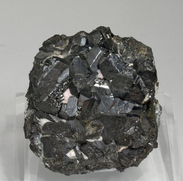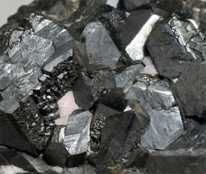 Group of cubo-octahedral crystals of Alabandite with the spinel law twin. The crystals, of good size, are with slightly pink Rhodochrosite.Uchucchacua Mine, level 300, ↓895 m., Oyón Province, Lima Department Peru (09/2009)