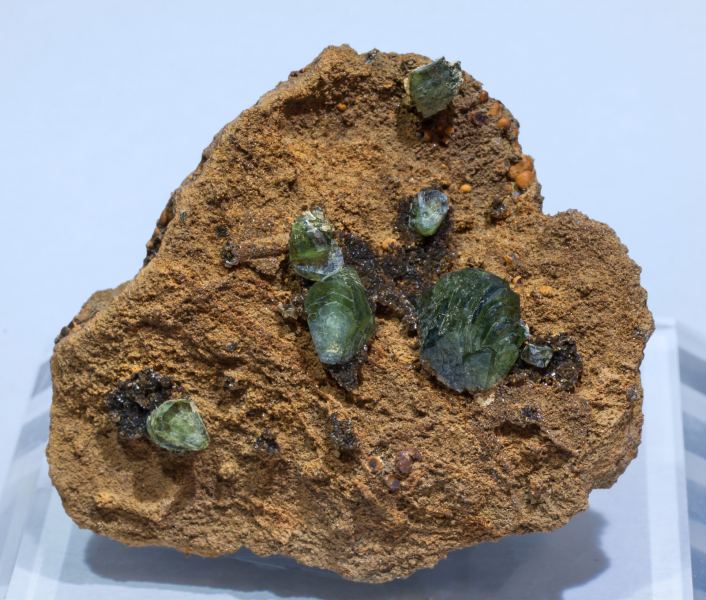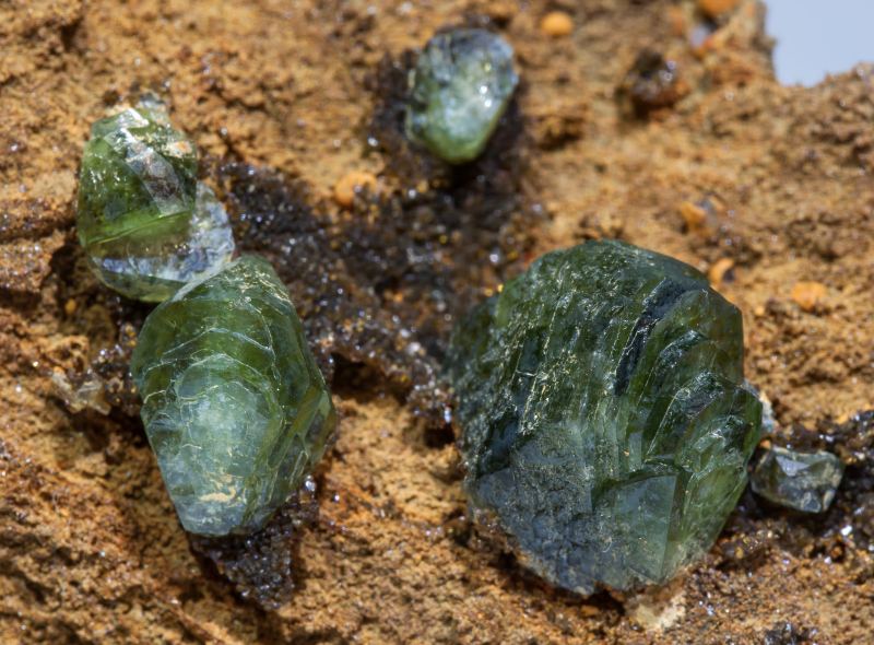 Ludlamite crystals with parallel growths and very well defined faces and edges, translucent, very bright, with a very intense green color and on matrix. With spheroidal Siderite. A relative novelty in Sainte Marie-aux-Mines 2019, with better quality than the previous ones seen so far from this locality.Cabeça do Cachorro claim, São Gabriel da Cachoeira, Cabeça do Cachorro area, Amazonas Brazil (2019)