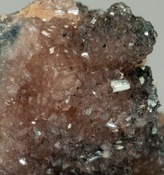 Druse, on Quartz matrix, of short prismatic Huréaulite crystals. They are transparent and bright and have an excellent salmon pink color, with darker terminations on some areas on the sample.Cigana Mine (Jocão Mine), Conselheiro Pena, Vale do Rio Doce, Minas Gerais Brazil (04-05/2006)