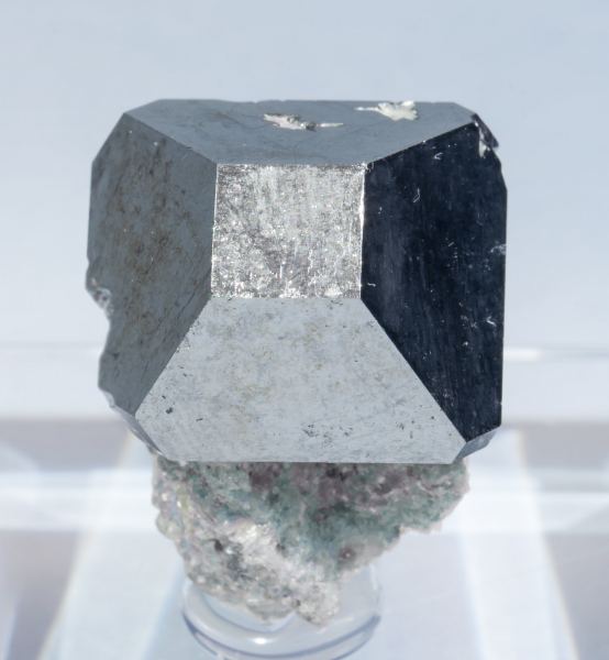 A novelty at Tucson 2018. Very sharp and aerial cubo-octahedral crystal, complete and on matrix, with Mica. It has two small contacts on the left side, recrystallized by the Carrollite itself. The sample is from a recent find of samples of a great quality.The specimen has been reviewed, photographed and published as a new discovery in the magazine Mineral Up on page 44 of the 2018/01 edition.