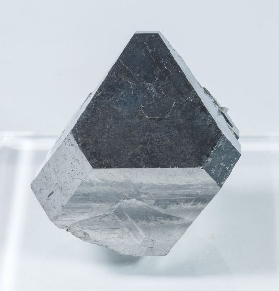 Complete cubo-octahedral floater crystal of Carrollite, sharp, with octahedral faces predominating, very lustrous and with well defined crystal forms. To highlight a rare characteristic in the Carrollites of this deposit, the crystal is a complete floater with all its faces well developed.Kamoya South II Mine, Kamoya, Kambove District, Katanga Copper Crescent, Katanga (Shaba) Democratic Republic of the Congo (Zaire) (2016-2017)
