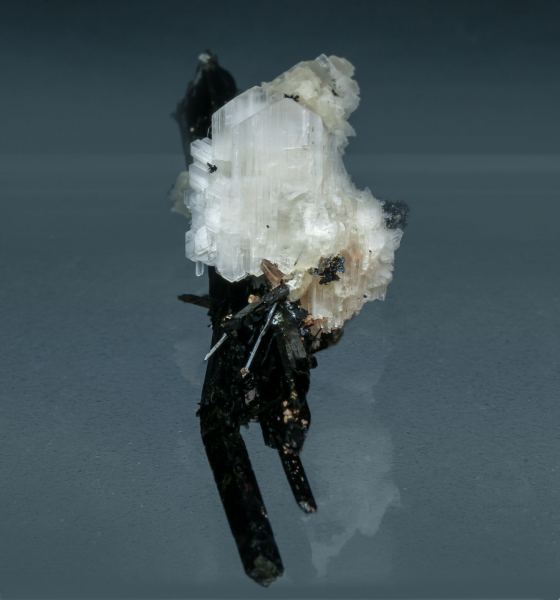 New in Munich 2019: Parallel growth of sharp white Eudidymite crystals, doubly terminated and implanted in a group of Aegirine crystals. Eudidymite is a species that very rarely occurs in sharp and well-terminated crystals and that is why the specimens from this find are so exceptional. This specimen has been analyzed and we will send a copy of the analysis to the buyer.Mount Malosa (Northwest side), Zomba District Malawi (09/2019)