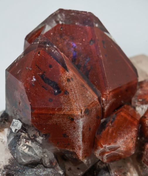 Group of crystals, some of them partially doubly terminated, with very well defined phantom growths of red Hematite inclusions. They have an amethystine nucleus visible under a strong light.Orange River, Warmbad, Karasburg District, ǁKaras Region Namibia (± 1980)