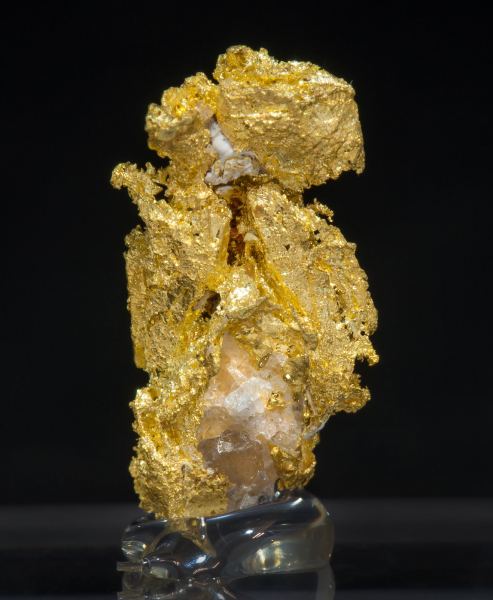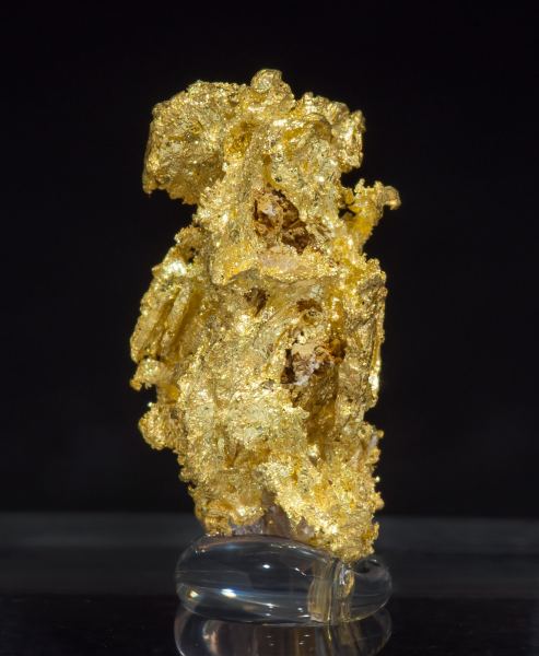 From a very recent find in the area of Western Sahara in Morocco, with the specific location still to be determined, this specimen of very brilliant crystallized Gold displays branched forms, skeletal shapes and it has minor Quartz.We will see what the future of the locality holds for these high quality absolute novelties.