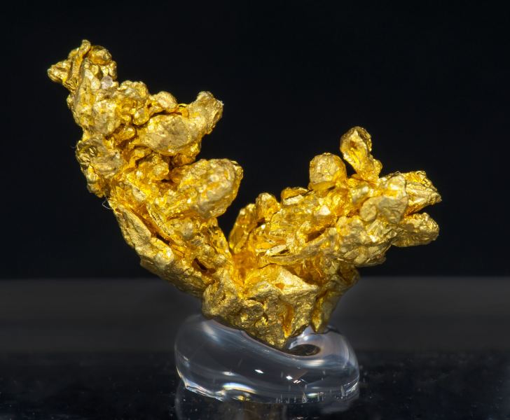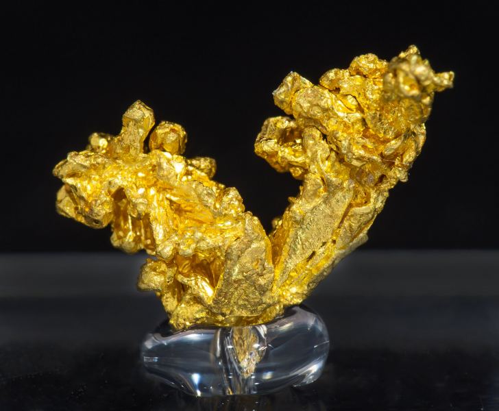 From a very recent find in the area of Western Sahara in Morocco, with the specific location yet to be determined, this specimen of Gold, very well crystallized and with brilliant luster, displays a sharply defined morphology, with the dominant forms of the octahedron and with curious hooked ends.We will see what the future of the locality holds for these high quality absolute novelties.