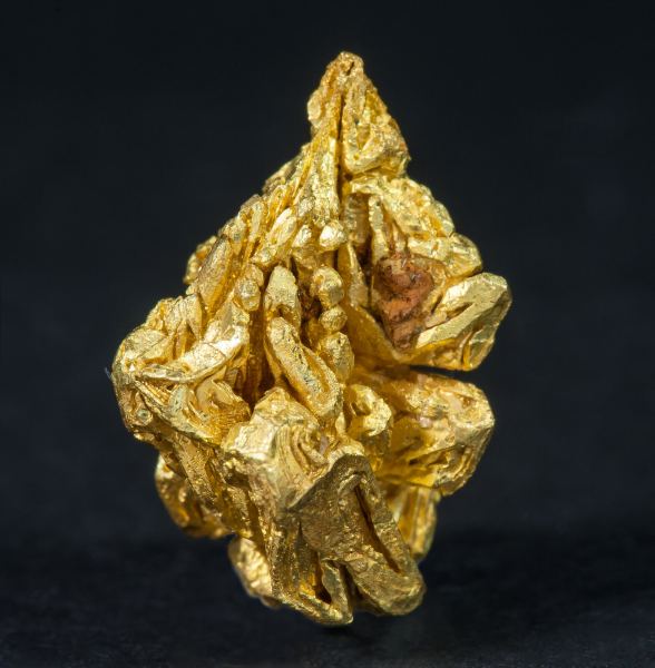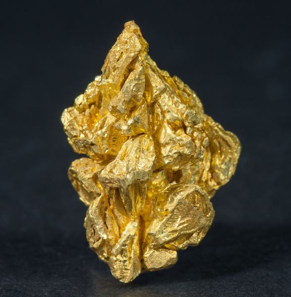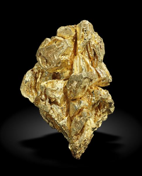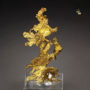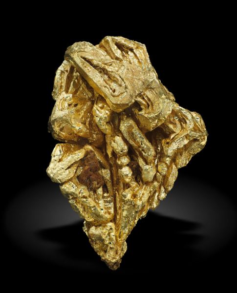 These elegant Golds were first found in 2020. This specimen is different from others of the same find, but it also has excellent crystallization, the dominant crystal forms being the dodecahedron and octahedron, with a sharp spinel-law twin. The material has been carefully analyzed and we will send a copy of the analysis to the buyer.Aouint Ighoman, Assa-Zag Province, Guelmim-Oued Noun Region Morocco (2020)