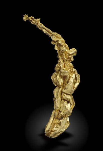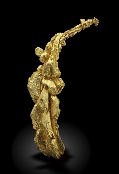 These elegant Golds were found for the first time in 2020. Very aerial and elongated group of Gold crystals with excellent crystallization, dominated by crystal forms of the dodecahedron and octahedron in highly stylized parallel growths, with sharp spinel-law twins. The material has been carefully analyzed and we will send a copy of the analysis to the buyer.Aouint Ighoman, Assa-Zag Province, Guelmim-Oued Noun Region Morocco (2020)