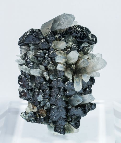 A novelty at Sainte Marie Virtual 2021. Octahedral crystals of Magnetite (titanium-rich variety) in parallel growths and with an aggregate habit that suggests they represent a pseudomorph after an Ilmenite crystal. The lustrous Magnetite crystals show fine growth lines and are partially covered by Microcline and Quartz crystals. Both the Magnetite and the Microcline have been analyzed and we will send a copy of the analysis to the buyer.Imilchil area, Anti-Atlas, Er Rachidia Province, Drâa-Tafilalet Region Morocco (12/2020)