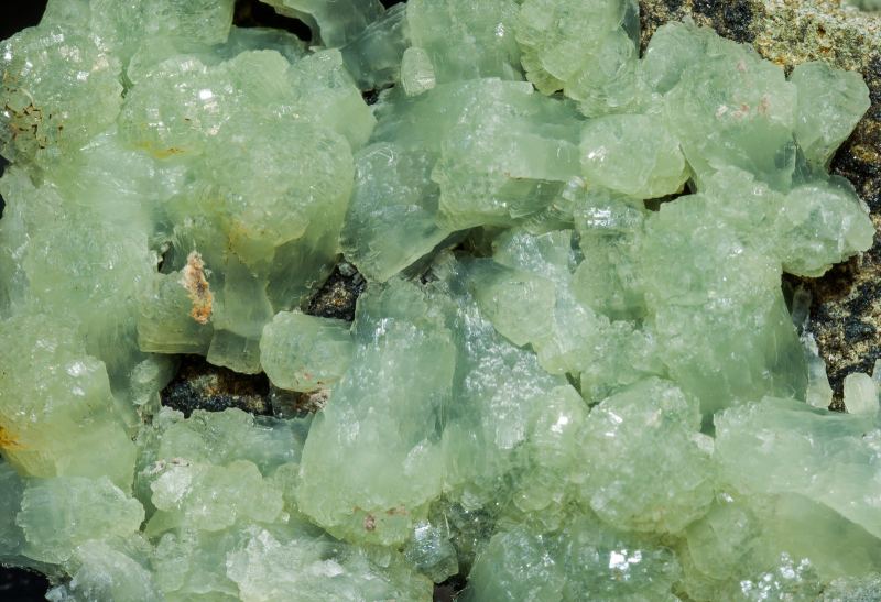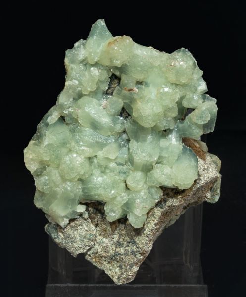New at Sainte Marie-aux-Mines 2019. Individualized spheroidal aggregates with parallel crystal growths of well defined translucent and bright faces, a uniform light green color and on matrix. They have a morphology not previously known at Imilchil.Imilchil area, Anti-Atlas, Er Rachidia Province, Drâa-Tafilalet Region Morocco (2019)