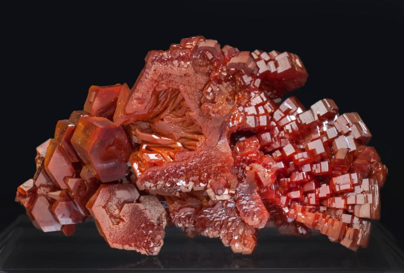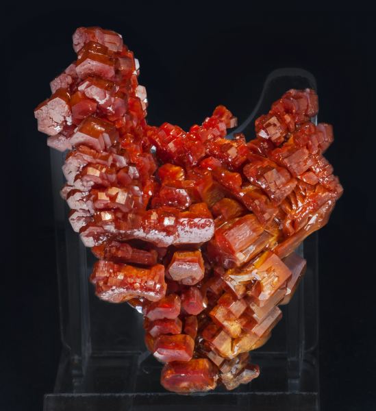 From a discovery of the year 2019 made in more depth than usual at the Coud'a area. Parallel polycrystalline aggregates forming walls with esthetic twisting and feather-like growths of crystals with a tabular shape, a lot of them doubly terminated, some with hollow growths, extraordinarily bright with a very vivid and uniform magenta-red color and slightly mat on the back side.Coud'a, Mibladen mining district, Mibladen, Midelt, Midelt Province, Drâa-Tafilalet Region Morocco (04-05/2019)