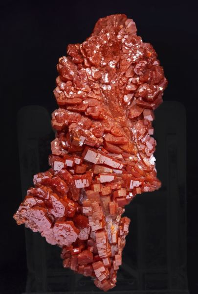 From a recent find, found deeper than usual at the Koudiat Mohamedine area. Parallel polycrystalline aggregates forming a feather-like growth of crystals with a thick tabular shape, a lot of them doubly terminated, extraordinarily bright with a very vivid and uniform magenta-red color and slightly mat on the back.Coud'a, Mibladen mining district, Mibladen, Midelt, Midelt Province, Drâa-Tafilalet Region Morocco (04-05/2019)