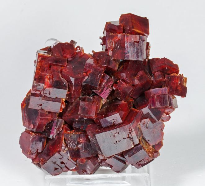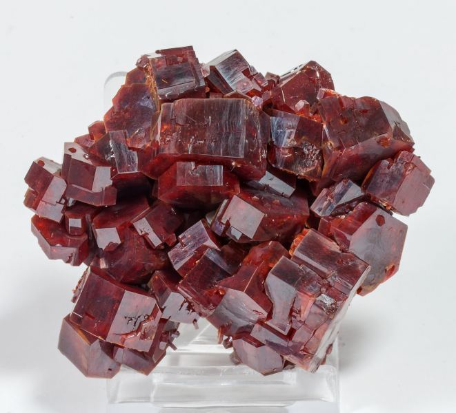From a find deeper than usual in the Coud'a area, with large and thick tabular crystals, extraordinarily lustrous and with a very vivid and uniform red color, slightly less bright and lighter in color on the back.Mohamedine, Coud'a, Mibladen mining district, Mibladen, Midelt, Midelt Province, Drâa-Tafilalet Region Morocco (01-02/2019)