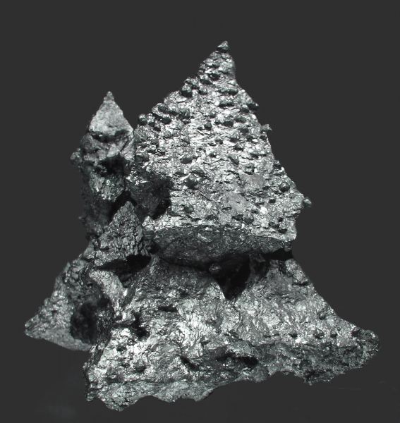 A novelty from the Sainte-Marie-aux-Mines Mineral Show. Uniaxial and parallel growth of octahedral Acanthite pseudomorphous after Argentite crystals. With very well defined faces and edges, these specimens have an exceptional luster, much better than other Acanthite specimens from Imiter we have seen before. On the back side of the sample one can see small Pyrite and Calcite crystals.Imiter Mine, Jebel Saghro, Imiter District, Tinghir Province, Drâa-Tafilalet Region Morocco (12/2007)