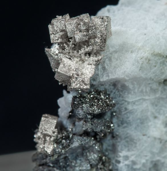 Dendritic aggregates and isolated cubic Silver crystals with extraordinarily well defined and very lustrous faces and edges. On a rock matrix with small crystals of Löllingite, and with Calcite, which has been acid-etched.Aït Ahmane, Agdz, Bou Azzer mining district, Zagora Province, Drâa-Tafilalet Region Morocco