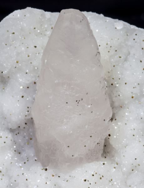 A novelty at Munich 2018. Scalenohedral crystal with rhombohedral terminal faces and very well defined polycrystalline growths. It is translucent, white, has slightly pink reflections and it is on a matrix of more Calcite. It shows an intense red fluorescence under long wave light and very intense red under short wave light.Aït Ahmane, Agdz, Bou Azzer mining district, Zagora Province, Drâa-Tafilalet Region Morocco (07/2018)
