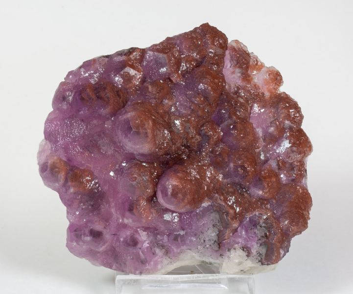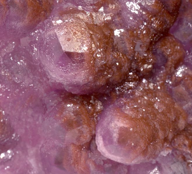 Irregular aggregate of crystals formed by a short prism with six faces and a flattened terminal rhombohedron, with vertical parallel growths all along the prism. The crystals are bright and have a deep and uniform mauve color.Agoudal Mines, Tansifite, Agdz, Bou Azzer mining district, Zagora Province, Drâa-Tafilalet Region Morocco (2012)