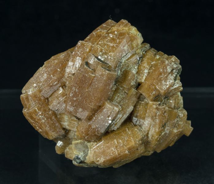 Druse, on matrix, of slightly arsenical elongated Vanadinite crystals with curvatures, many of them doubly terminated, lustrous and of a lighter color than usual in this type of specimen, with black Mottramite coatings. The Mottramite was analyzed and we will send a copy of the analysis to the buyer. The piece comes from Touissit's past, and has a very high quality even compared to other specimens from those glorious times.Touissit, Touissit District, Jerada Province, Oriental Region Morocco (±1990)