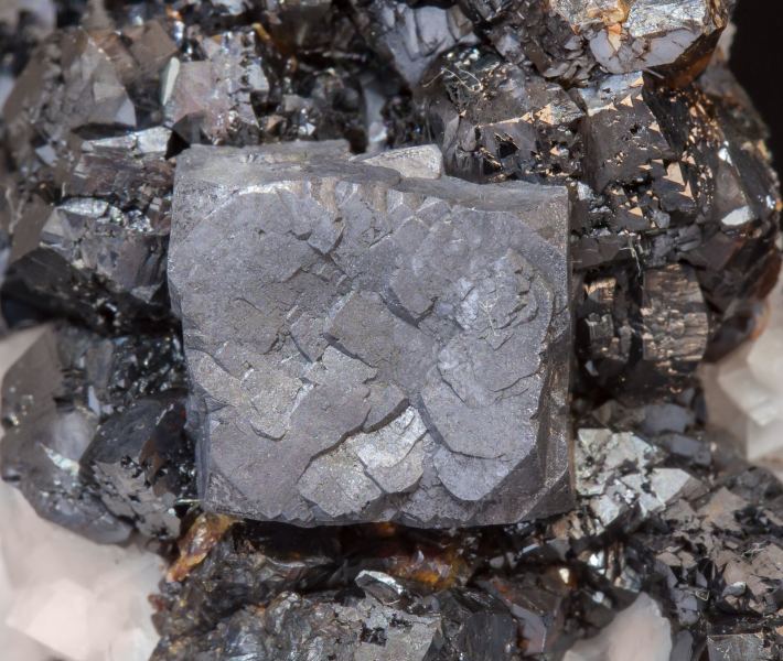 A novelty at the 2020 Munich Virtual show. Cubo-octahedral crystals of Galena with very distinct polycrystalline growths, good luster, on a matrix covered by rhombohedral Dolomite crystals with a pale pink color, and small white Calcite crystals. This material was practically unknown until now.Zelidja Mine, Touissit-Bou Bekker mining district, Jerada Province, Oriental Region Morocco