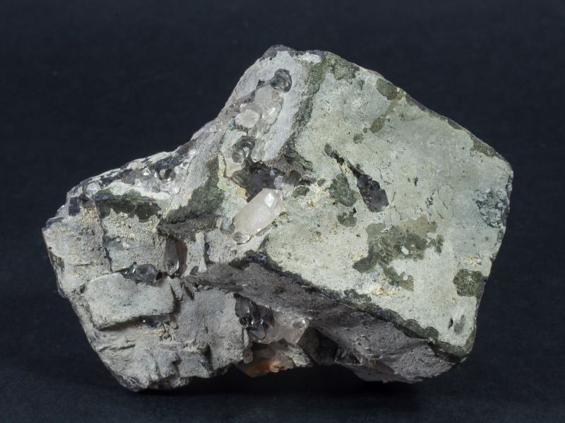 Galena with Cerussite, Quartz and Dolomite (variety Fe-bearing dolomite)