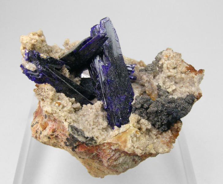 Crystals of very well defined faces and edges, very bright, of deep blue color and transparent on their edges. They are on sandstone matrix.Kerrouchen, Khénifra Province, Beni Mellal-Khenifra Region Morocco (2007)