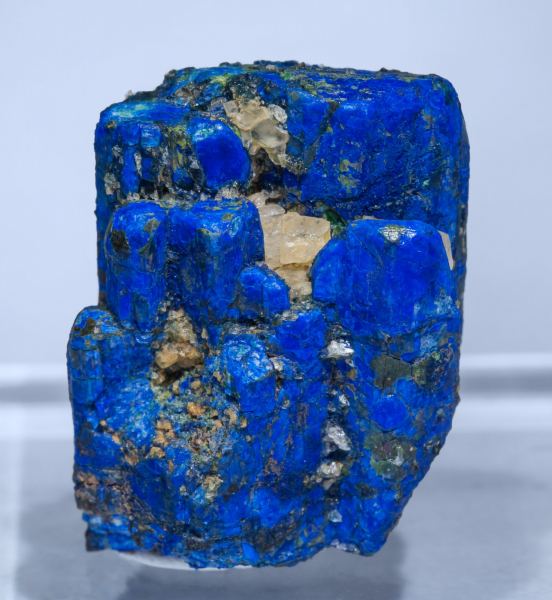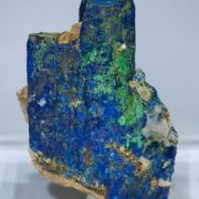 Floater parallel growth of Chalcostibite crystals with excellent terminal faces and superficially substituted by Azurite. The color, the quality and the crystal definition are unusual for the species.Rar el Anz, Oued Cherrat (Cherrat Wadi), Chaouia-Ouardigha, Casablanca Prefecture, Casablanca-Settat Region Morocco (2017)