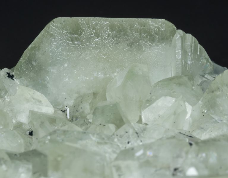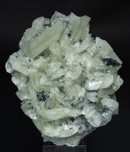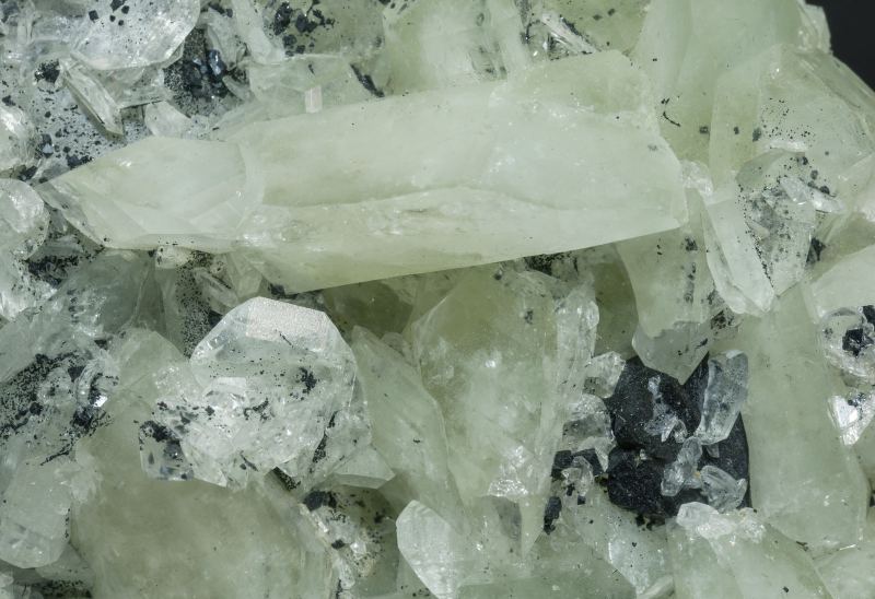 Group of flattened Datolite crystals that are bright, translucent, have a uniform clear green color and are with black and very bright Ilvaite crystals. A Russian classic.First Sovetskii Mine, Dalnegorsk, Dalnegorsk Urban District, Primorsky Krai Russia (1996)
