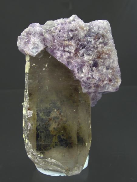 Group of translucent octahedral Fluorite crystals, on a smoky Quartz crystal. The sample is from a locality where nowadays is quite difficult to obtain specimens.Kara-Oba, Betpak-Dala (Bet-Pak-Dala) Desert, Karaganda Region Kazakhstan (±1993)