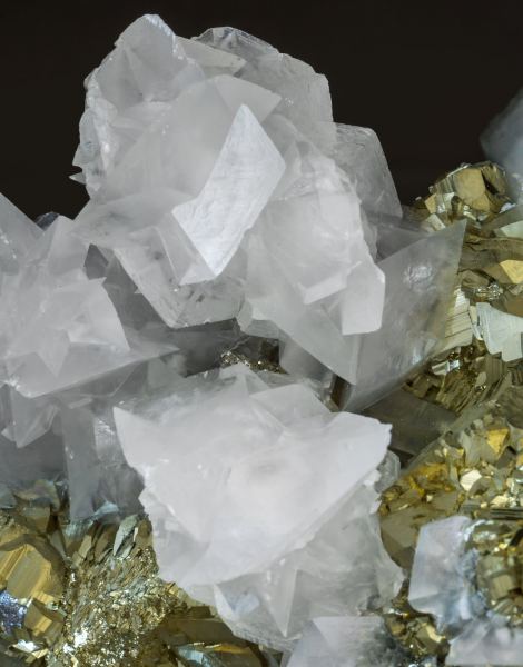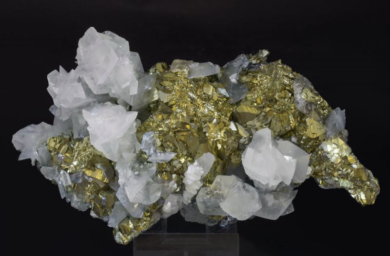Druse of complex Pyrite crystals very rich in faces, very bright and partially coated by white Calcite crystals. The sample is from recent finds.Stan Trg (Stari Trg) Mine, Trepča Complex, Trepča Valley, Kosovska Mitrovica, Kosovska Mitrovica District Kosovo (2016)
