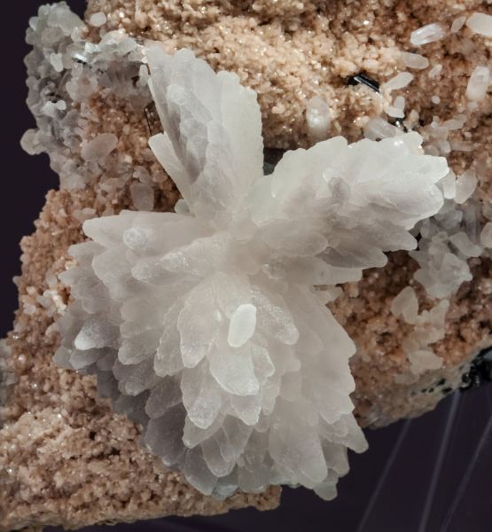 Rhodochrosite with Calcite and Boulangerite (variety plumosite)